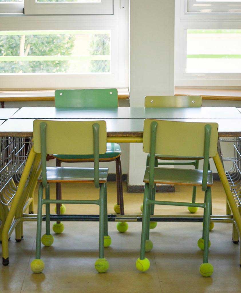 No somos expertos tenistas, pero ya tenemos más de 500 pelotas de este deporte en el colegio y seguiremos hasta tener las más de 1000 patas de las sillas silenciadas y todos los suelos protegidos.